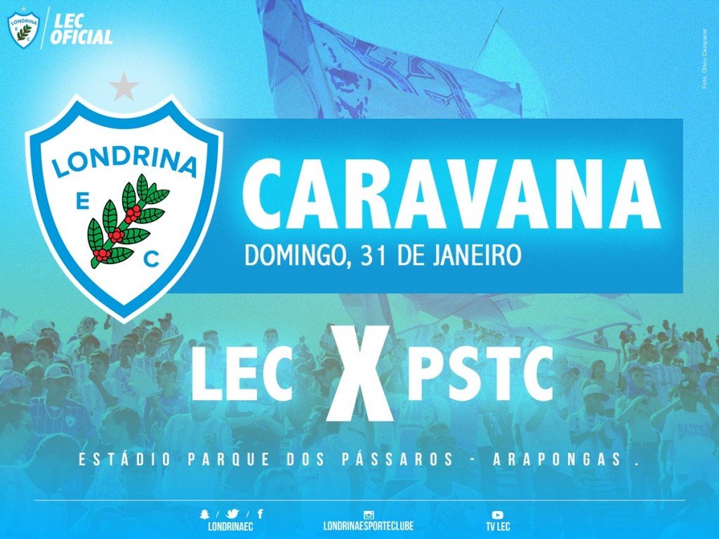 O Londrina Esporte Clube (LEC) estreia no Campeonato Paranaense neste domingo, 31, contra o PSTC, no estádio dos Pássaros, em Arapongas. Os primeiros jogos do estadual serão realizados na cidades dos pássaros em virtude da troca dos gramados do estádio do Café e do Vitorino Gonçalves Dias.Para o torcedor alviceleste que deseja acompanhar a partida, o LEC informa duas opções de caravanas.  Confira!